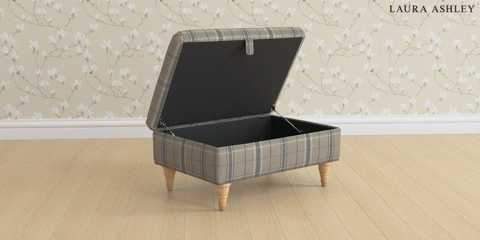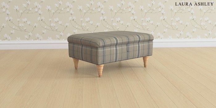 6.12.1 Buy Beaumaris by Laura Ashley Storage Footstool Longstowe Check French Grey Low Turned - Light Oak from the Laura Ashley online shop Click here to use our website with more accessibility support, for example screen readers