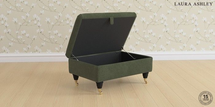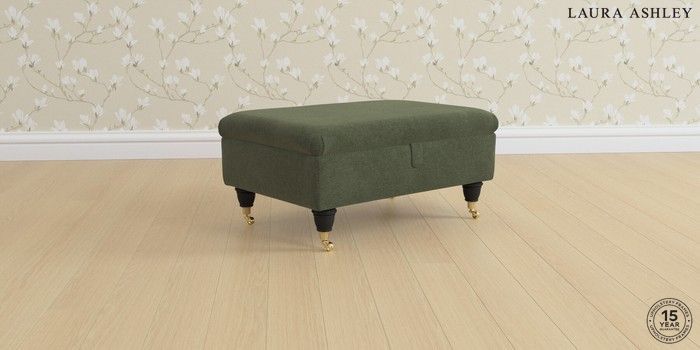 6.12.1 Buy Beaumaris by Laura Ashley Storage Footstool Lundar Chenille Ivy Green Low Brass Castor - Black from the Laura Ashley online shop Click here to use our website with more accessibility support, for example screen readers