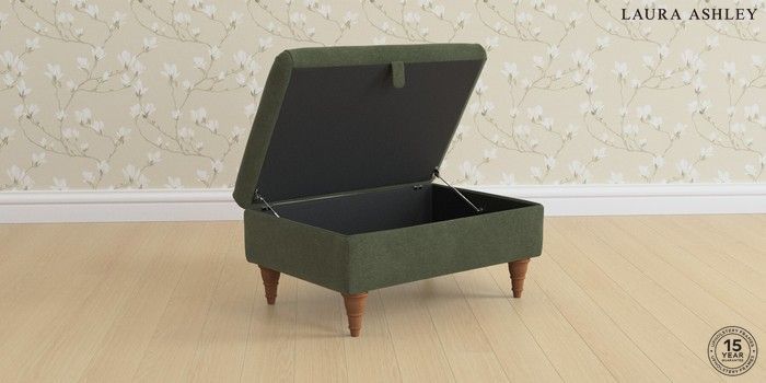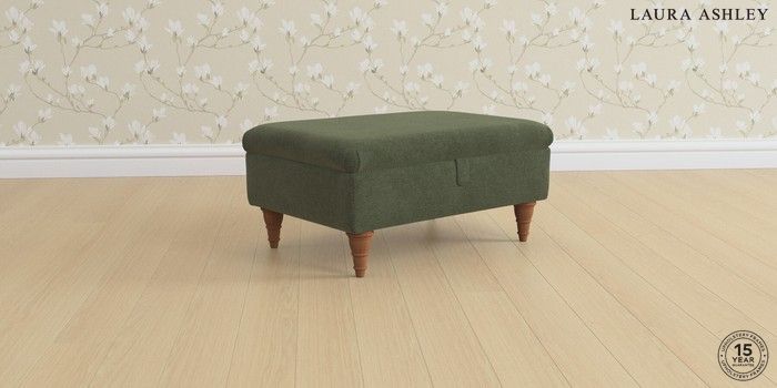 6.12.1 Buy Beaumaris by Laura Ashley Storage Footstool Lundar Chenille Ivy Green Low Turned - Teak from the Laura Ashley online shop Click here to use our website with more accessibility support, for example screen readers
