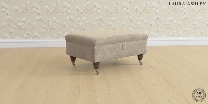 6.12.1 Buy Beaumaris by Laura Ashley Storage Footstool Lundar Chenille Truffle Natural Low Chrome Castor - Chestnut from the Laura Ashley online shop Click here to use our website with more accessibility support, for example screen readers