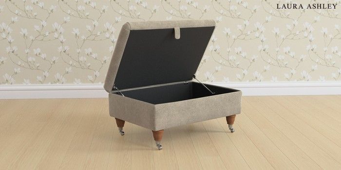 6.12.13 Buy Beaumaris by Laura Ashley Storage Footstool Lundar Chenille Truffle Natural Low Chrome Castor - Teak from the Laura Ashley online shop Click here to use our website with more accessibility support, for example screen readers