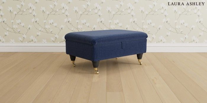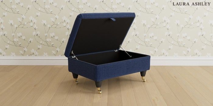 6.12.1 Buy Beaumaris by Laura Ashley Storage Footstool Nantmor Midnight Navy Low Brass Castor - Black from the Laura Ashley online shop Click here to use our website with more accessibility support, for example screen readers