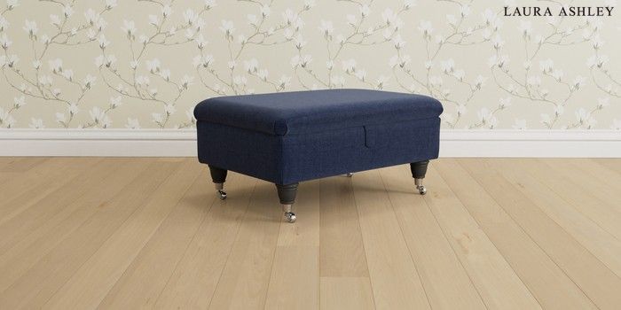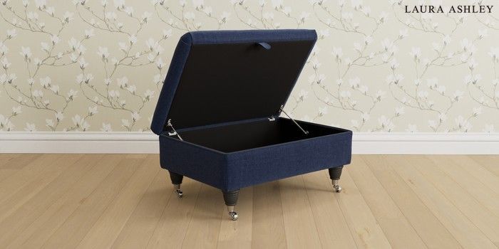 6.12.1 Buy Beaumaris by Laura Ashley Storage Footstool Nantmor Midnight Navy Low Chrome Castor - Black from the Laura Ashley online shop Click here to use our website with more accessibility support, for example screen readers