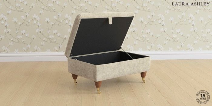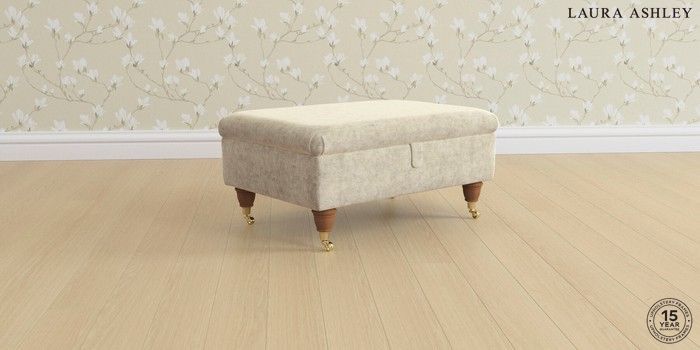6.12.13 Buy Beaumaris by Laura Ashley Storage Footstool Nantmor Truffle Natural Low Brass Castor - Teak from the Laura Ashley online shop Click here to use our website with more accessibility support, for example screen readers