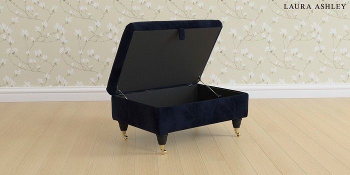 6.12.1 Buy Beaumaris by Laura Ashley Storage Footstool Orla Midnight Navy Low Brass Castor - Black from the Laura Ashley online shop Click here to use our website with more accessibility support, for example screen readers