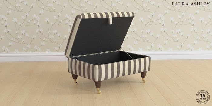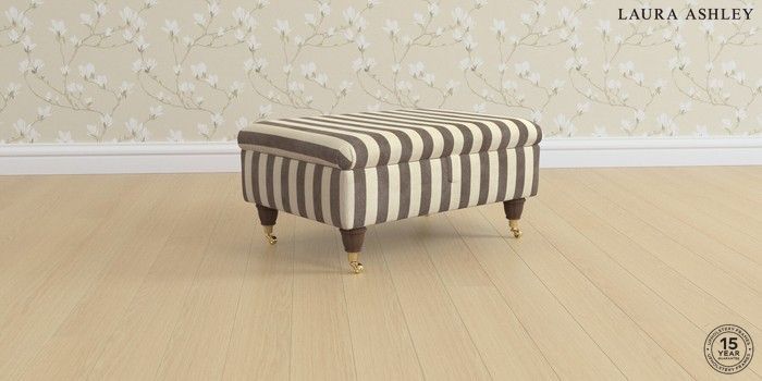 6.12.1 Buy Beaumaris by Laura Ashley Storage Footstool Orla Stripe Dark Truffle Natural Low Brass Castor - Chestnut from the Laura Ashley online shop Click here to use our website with more accessibility support, for example screen readers