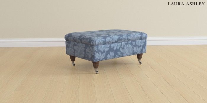 6.12.1 Buy Beaumaris by Laura Ashley Storage Footstool Tamara Dusky Seaspray Blue Low Chrome Castor - Chestnut from the Laura Ashley online shop Click here to use our website with more accessibility support, for example screen readers