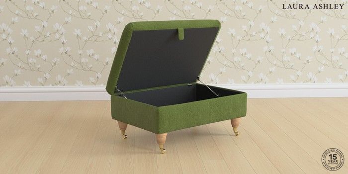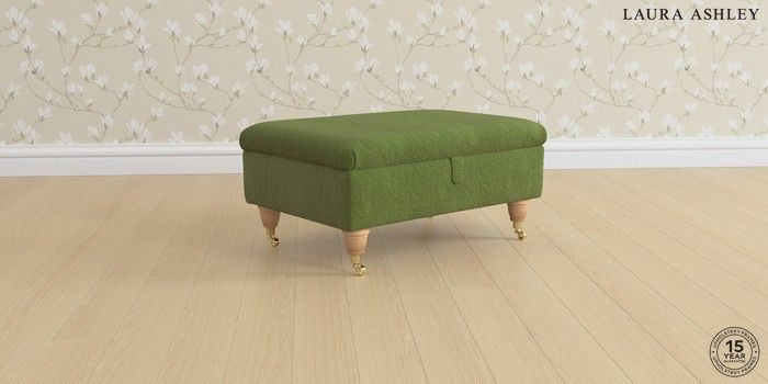 6.12.1 Buy Beaumaris by Laura Ashley Storage Footstool Tichwell Olive Green Low Brass Castor - Light Oak from the Laura Ashley online shop Click here to use our website with more accessibility support, for example screen readers