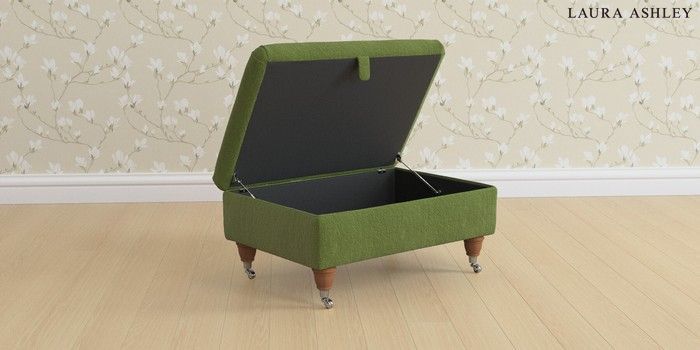 6.12.1 Buy Beaumaris by Laura Ashley Storage Footstool Tichwell Olive Green Low Chrome Castor - Teak from the Laura Ashley online shop Click here to use our website with more accessibility support, for example screen readers