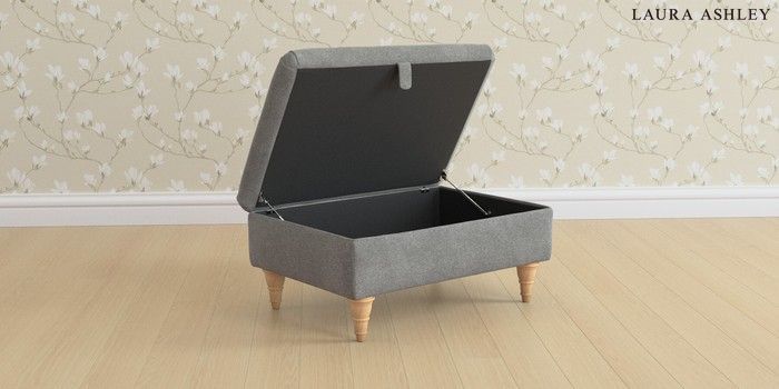 6.12.1 Buy Beaumaris by Laura Ashley Storage Footstool Wooton Dark Steel Grey Low Turned - Light Oak from the Laura Ashley online shop Click here to use our website with more accessibility support, for example screen readers