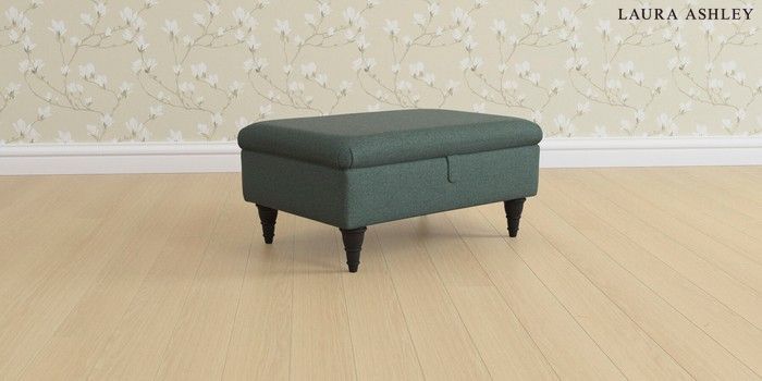 6.12.1 Buy Beaumaris by Laura Ashley Storage Footstool Wooton Forest Green Low Turned - Black from the Laura Ashley online shop Click here to use our website with more accessibility support, for example screen readers