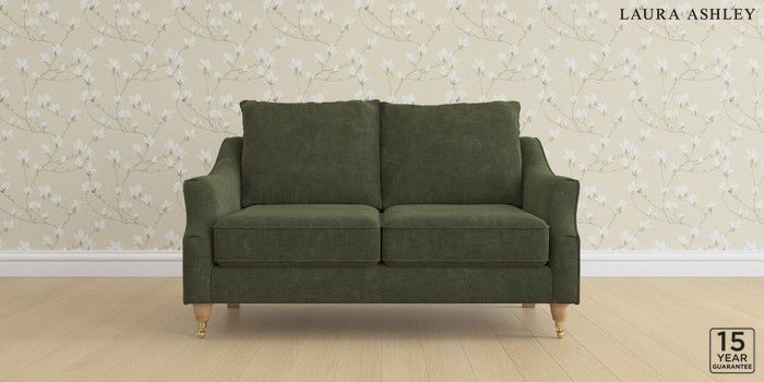 6.12.13 Buy Beverley by Laura Ashley 2 Seater Sofa Alwyn Velvet Ivy Green Low Brass Castor - Light Oak from the Laura Ashley online shop Click here to use our website with more accessibility support, for example screen readers