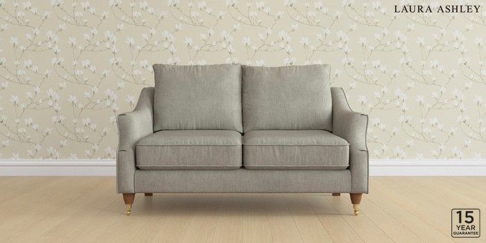 6.12.1 Buy Beverley by Laura Ashley 2 Seater Sofa Bainton Pale Steel Grey Low Brass Castor - Teak from the Laura Ashley online shop Click here to use our website with more accessibility support, for example screen readers