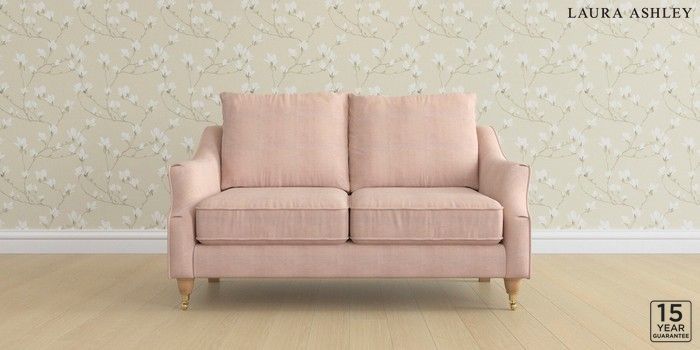 6.12.1 Buy Beverley by Laura Ashley 2 Seater Sofa Edwin Chenille Blush Pink Low Brass Castor - Light Oak from the Laura Ashley online shop Click here to use our website with more accessibility support, for example screen readers