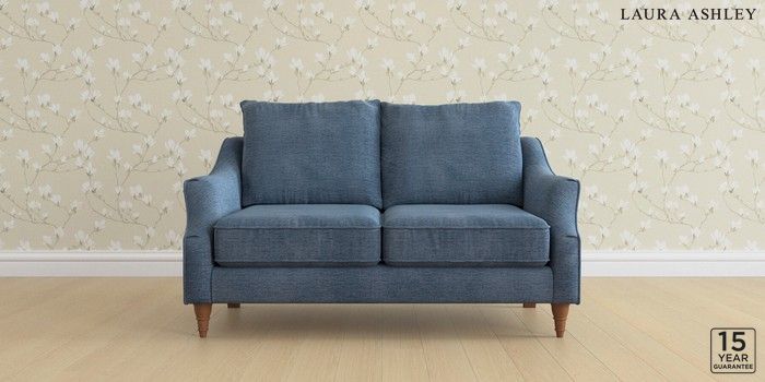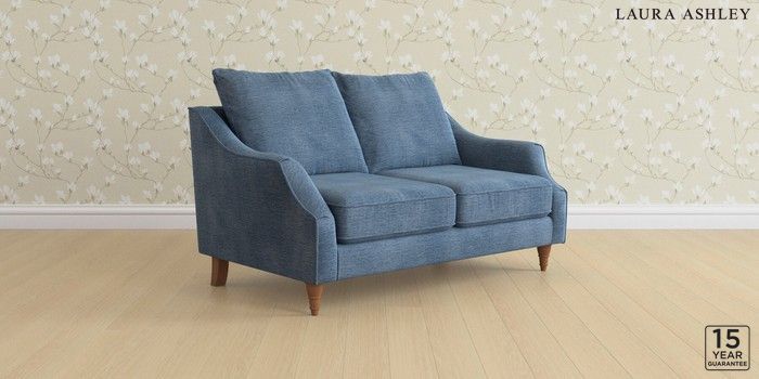 6.12.1 Buy Beverley by Laura Ashley 2 Seater Sofa Edwin Chenille Seaspray Blue Low Turned - Teak from the Laura Ashley online shop Click here to use our website with more accessibility support, for example screen readers