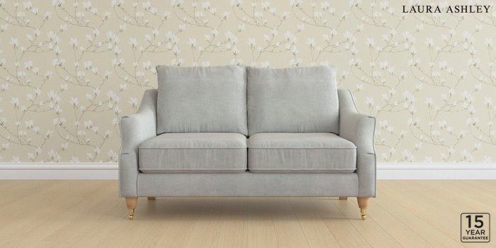 6.12.1 Buy Beverley by Laura Ashley 2 Seater Sofa Edwin Chenille Silver Grey Low Brass Castor - Light Oak from the Laura Ashley online shop Click here to use our website with more accessibility support, for example screen readers