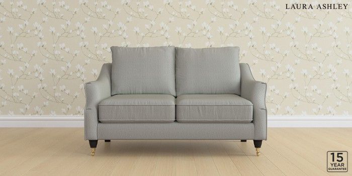 6.12.13 Buy Beverley by Laura Ashley 2 Seater Sofa Edwin Herringbone Pale Steel Grey Low Brass Castor - Black from the Laura Ashley online shop Click here to use our website with more accessibility support, for example screen readers