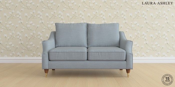6.12.1 Buy Beverley by Laura Ashley 2 Seater Sofa Kinsham Seaspray Blue Low Brass Castor - Teak from the Laura Ashley online shop Click here to use our website with more accessibility support, for example screen readers