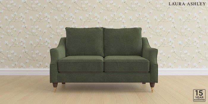 6.12.13 Buy Beverley by Laura Ashley 2 Seater Sofa Lundar Chenille Ivy Green Low Brass Castor - Chestnut from the Laura Ashley online shop Click here to use our website with more accessibility support, for example screen readers