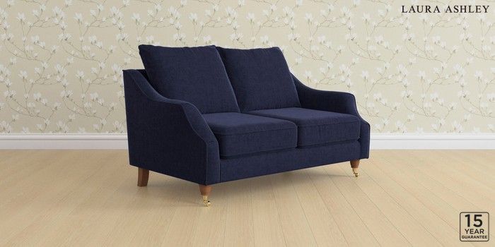 6.12.13 Buy Beverley by Laura Ashley 2 Seater Sofa Nantmor Midnight Navy Low Brass Castor - Teak from the Laura Ashley online shop Click here to use our website with more accessibility support, for example screen readers