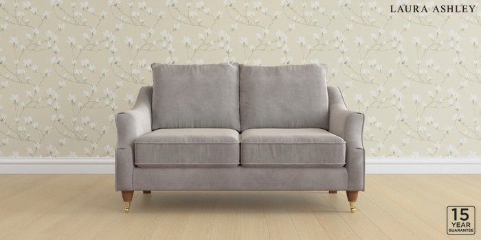 6.12.1 Buy Beverley by Laura Ashley 2 Seater Sofa Orla Pale Steel Grey Low Brass Castor - Teak from the Laura Ashley online shop Click here to use our website with more accessibility support, for example screen readers