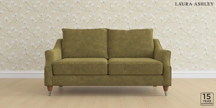 6.12.1 Buy Beverley by Laura Ashley 3 Seater Small Sofa Alwyn Velvet Olive Green Low Chrome Castor - Teak from the Laura Ashley online shop Click here to use our website with more accessibility support, for example screen readers
