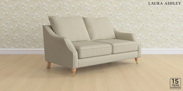 6.12.13 Buy Beverley by Laura Ashley 3 Seater Small Sofa Anneliese Natural Low Brass Castor - Light Oak from the Laura Ashley online shop Click here to use our website with more accessibility support, for example screen readers