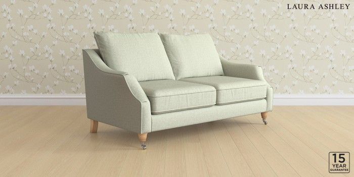 6.12.13 Buy Beverley by Laura Ashley 3 Seater Small Sofa Anneliese Sage Green Low Chrome Castor - Light Oak from the Laura Ashley online shop Click here to use our website with more accessibility support, for example screen readers