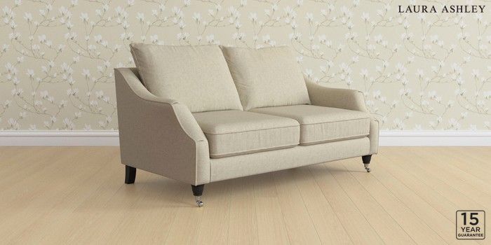 6.12.1 Buy Beverley by Laura Ashley 3 Seater Small Sofa Bainton Natural Low Chrome Castor - Black from the Laura Ashley online shop Click here to use our website with more accessibility support, for example screen readers