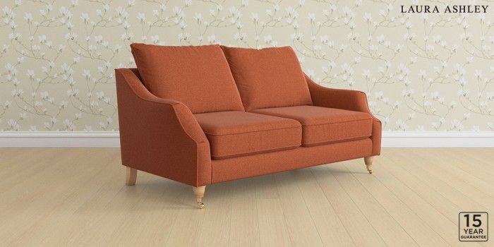 6.12.1 Buy Beverley by Laura Ashley 3 Seater Small Sofa Harley Terracotta Orange Low Brass Castor - Light Oak from the Laura Ashley online shop Click here to use our website with more accessibility support, for example screen readers