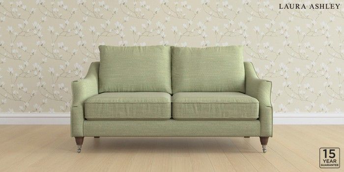 6.12.13 Buy Beverley by Laura Ashley 3 Seater Small Sofa Kinsham Hedgerow Green Low Chrome Castor - Chestnut from the Laura Ashley online shop Click here to use our website with more accessibility support, for example screen readers