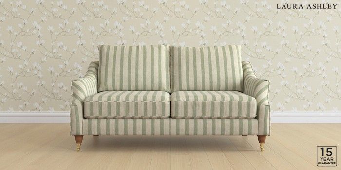 6.12.1 Buy Beverley by Laura Ashley 3 Seater Small Sofa Kinsham Stripe Hedgerow Green Low Brass Castor - Teak from the Laura Ashley online shop Click here to use our website with more accessibility support, for example screen readers