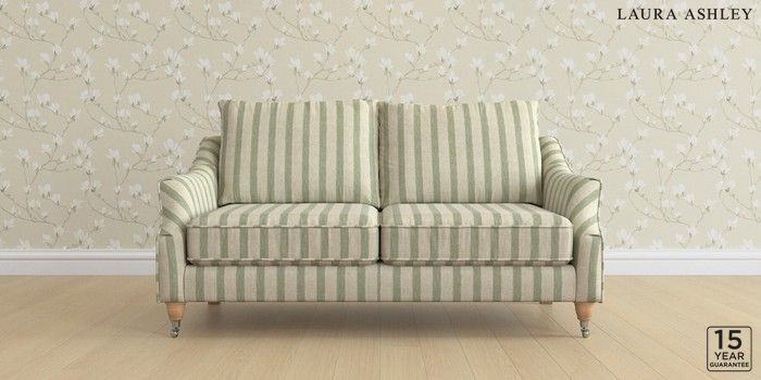 6.12.1 Buy Beverley by Laura Ashley 3 Seater Small Sofa Kinsham Stripe Hedgerow Green Low Chrome Castor - Light Oak from the Laura Ashley online shop Click here to use our website with more accessibility support, for example screen readers