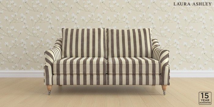 6.12.13 Buy Beverley by Laura Ashley 3 Seater Small Sofa Orla Stripe Dark Truffle Natural Low Chrome Castor - Light Oak from the Laura Ashley online shop Click here to use our website with more accessibility support, for example screen readers