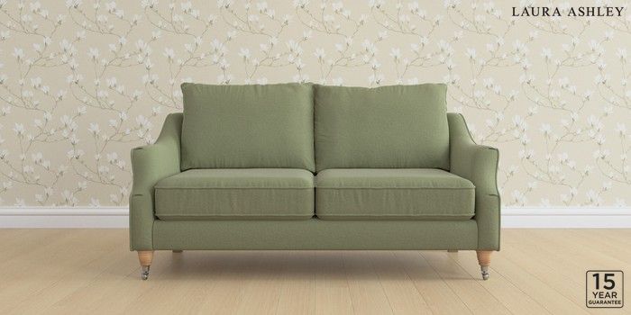 6.12.13 Buy Beverley by Laura Ashley 3 Seater Small Sofa Peyton Hedgerow Green Low Chrome Castor - Light Oak from the Laura Ashley online shop Click here to use our website with more accessibility support, for example screen readers