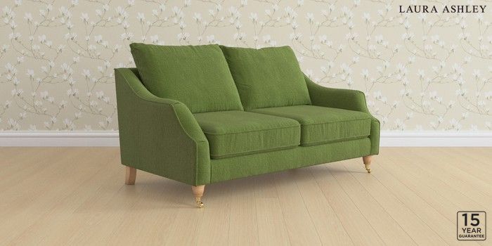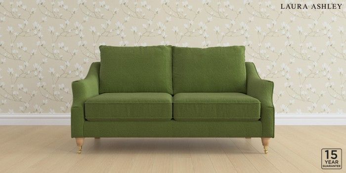 6.12.1 Buy Beverley by Laura Ashley 3 Seater Small Sofa Tichwell Olive Green Low Brass Castor - Light Oak from the Laura Ashley online shop Click here to use our website with more accessibility support, for example screen readers