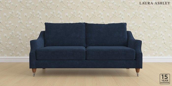 6.12.1 Buy Beverley by Laura Ashley 3 Seater Sofa Alwyn Velvet Midnight Navy Low Chrome Castor - Teak from the Laura Ashley online shop Click here to use our website with more accessibility support, for example screen readers