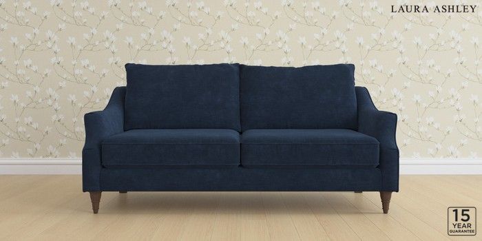 6.12.1 Buy Beverley by Laura Ashley 3 Seater Sofa Alwyn Velvet Midnight Navy Low Turned - Chestnut from the Laura Ashley online shop Click here to use our website with more accessibility support, for example screen readers