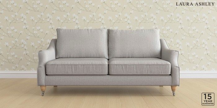 6.12.1 Buy Beverley by Laura Ashley 3 Seater Sofa Anneliese Steel Grey Low Chrome Castor - Light Oak from the Laura Ashley online shop Click here to use our website with more accessibility support, for example screen readers