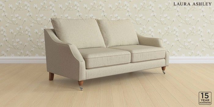 6.12.1 Buy Beverley by Laura Ashley 3 Seater Sofa Bainton Natural Low Chrome Castor - Teak from the Laura Ashley online shop Click here to use our website with more accessibility support, for example screen readers