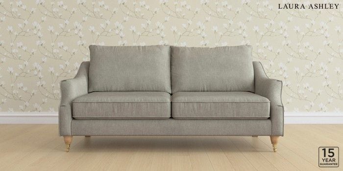 6.12.13 Buy Beverley by Laura Ashley 3 Seater Sofa Bainton Pale Steel Grey Low Brass Castor - Light Oak from the Laura Ashley online shop Click here to use our website with more accessibility support, for example screen readers