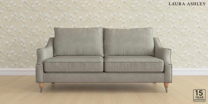 6.12.1 Buy Beverley by Laura Ashley 3 Seater Sofa Bainton Pale Steel Grey Low Chrome Castor - Light Oak from the Laura Ashley online shop Click here to use our website with more accessibility support, for example screen readers
