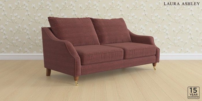 7.2.6 Buy Beverley by Laura Ashley 3 Seater Sofa Edwin Chenille Burgundy Red Low Brass Castor - Teak from the Laura Ashley online shop Click here to use our website with more accessibility support, for example screen readers
