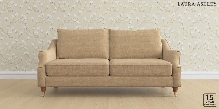 6.12.1 Buy Beverley by Laura Ashley 3 Seater Sofa Edwin Chenille Gold Natural Low Brass Castor - Teak from the Laura Ashley online shop Click here to use our website with more accessibility support, for example screen readers