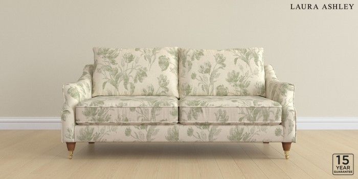 6.12.1 Buy Beverley by Laura Ashley 3 Seater Sofa Gosford Weave Sage Green Low Brass Castor - Teak from the Laura Ashley online shop Click here to use our website with more accessibility support, for example screen readers