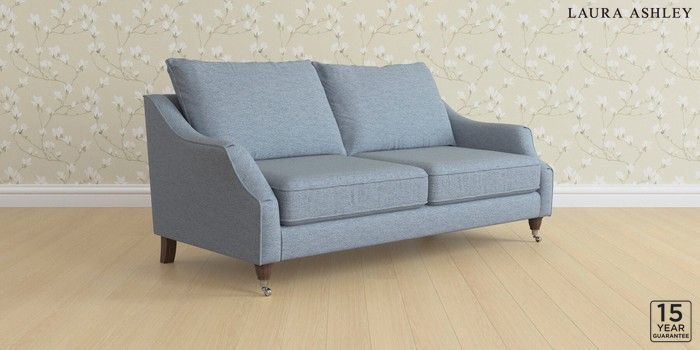 6.12.1 Buy Beverley by Laura Ashley 3 Seater Sofa Harley Seaspray Blue Low Chrome Castor - Chestnut from the Laura Ashley online shop Click here to use our website with more accessibility support, for example screen readers