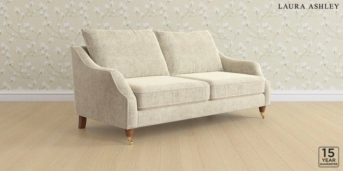 6.12.1 Buy Beverley by Laura Ashley 3 Seater Sofa Nantmor Truffle Natural Low Brass Castor - Teak from the Laura Ashley online shop Click here to use our website with more accessibility support, for example screen readers