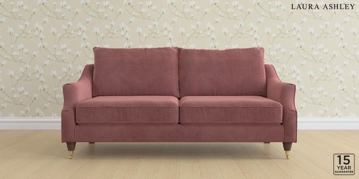 6.12.13 Buy Beverley by Laura Ashley 3 Seater Sofa Peyton Plum Purple Low Brass Castor - Chestnut from the Laura Ashley online shop Click here to use our website with more accessibility support, for example screen readers