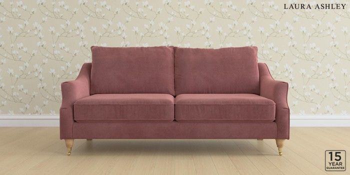 6.12.1 Buy Beverley by Laura Ashley 3 Seater Sofa Peyton Plum Purple Low Brass Castor - Light Oak from the Laura Ashley online shop Click here to use our website with more accessibility support, for example screen readers