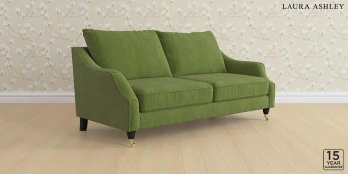 6.12.13 Buy Beverley by Laura Ashley 3 Seater Sofa Tichwell Olive Green Low Brass Castor - Black from the Laura Ashley online shop Click here to use our website with more accessibility support, for example screen readers
